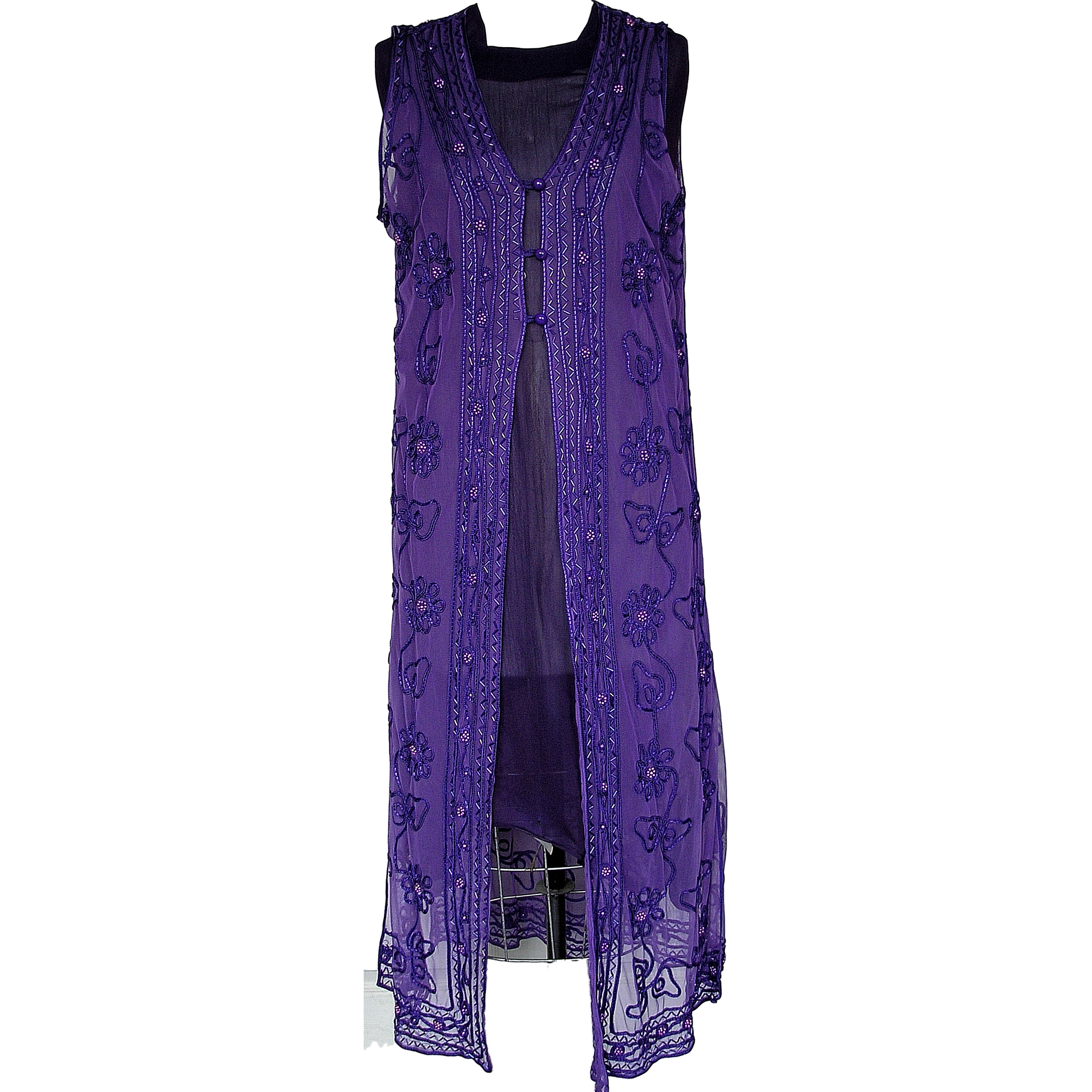 Beautiful Sheer Vest Adorned with Ribbon and Beads